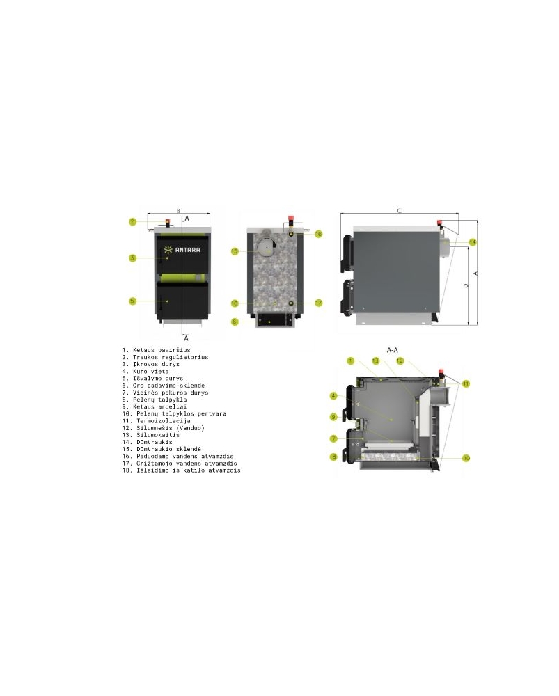 Lietuvos įmonės Antara gaminami kieto kuro katilai-viryklės KV-12, skirti patalpų šildymui bei maisto gaminimui, kūrenami malkomis, pjuvenų, durpių ar medžio briketais. Katilai viryklės KV-12 pritaikyti eksploatuoti tiek žiemos sezonu – kuomet šildomos patalpos ir ruošiamas maistas, tiek vasaros sezonu – kai įrenginys naudojamas tik maisto ruošimui. Jie pasižymi patikima konstrukcija, efektyvumu bei ilgaamžiškumu. Didelė pakura užtikrina ilgą vienos įkrovos degimo laiką, bei palengvina katilo priežiūrą ir aptarnavimą, o padidinto ploto šilumokaitis įtakoja katilo-viryklės KV-12 efektyvumą. Degimo procesas valdomas ir reguliuojamas traukos reguliatoriumi, kuris įeina į gamyklinę įrenginio komplektaciją. Prie katilo komplektuojami termometras bei pakuros valymo įrankiai.