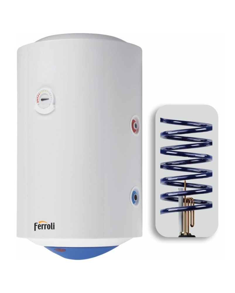 Kombinuotas vandens šildytuvas Ferroli Calypso MT 100 – tai praktiškas ir patikimas sprendimas karšto vandens ruošimui namuose. Šis vertikalus modelis su 6 vijų šilumokaičiu sukurtas taip, kad galėtumėte lanksčiai naudoti du energijos šaltinius: elektros energiją arba šildymo sistemos termofikatą. Toks sprendimas leidžia efektyviai išnaudoti šilumą šaltuoju metų laiku, o vasarą – patogiai ruošti karštą vandenį naudojant elektrinį kaitinimo elementą.