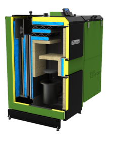 Granulinis katilas Kamen EKO Komfort 20 kW – tai labai aukšto efektyvumo, siekiančio net 91%, modernios konstrukcijos katilas. EKO Komfort serijos katilų aukštas našumas pasiekiamas dėka technologinių sprendimų. Juose panaudotas naujos konstrukcijos ploščių ir vamzdžių šilumokaitis, katile montuojamas tokioje padėtyje, kad efektyviausiai, tai yra su mažiausiais šilumos nuostoliais galėtų perduoti šildymo sistemai degimo proceso metu išskirtą šilumą. Šiltuoju metų sezonu granulinis katilas gali būti naudojamas tik karšto vandens ruošimui. Šių granulinių katilų gamybai naudojamos tiktai aukščiausios kokybės medžiagos - 6 mm storio 265 GH markės katilinis plienas, aukštos kokybės ketus, bei kitos specifines medžiagos, skirtos šildymo katilų gamybai. Vienos iš svarbiausių granulinių katilų dalys - tai automatinė kuro padavimo sistema, bei granulių degiklis. Kamen EKO Komfort katiluose kuro degiklis ir automatinis kuro padavimo mechanizmas yra sukonstruoti įdiegiant naujausius techninius sprendimus. Šie mechanizmai pagaminti iš aukštos kokybės ketaus, todėl yra labai patvarūs ir ilgaamžiai. Katilo atvamzdžiai - paduodantis į šildymo sistemą karštą vandenį ir grįžtančio atvėsusio vandens, gali buti sumontuoti tiek kairėje arba dešinėje katilo pusėse. Ne vienerius metus dirbdami su Kamen granulinais katilais, galime teigti - tai patikimi ir sąlyginai pigus katilai.