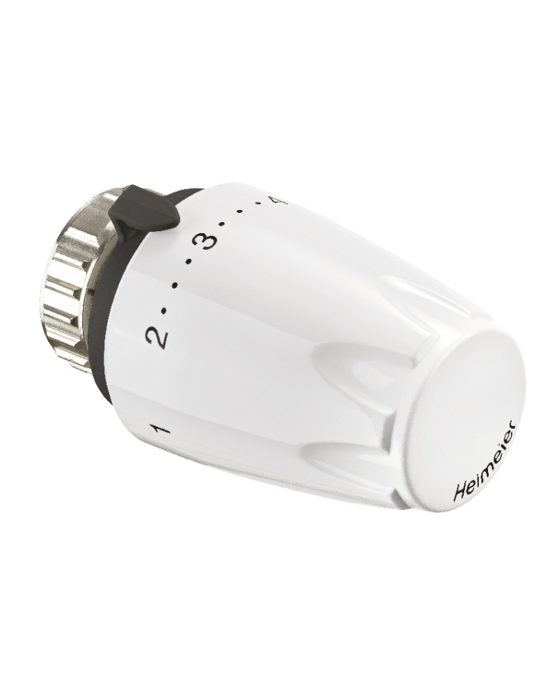 Heimeier DX termostatinė galvutė radiatoriams – tai modernus ir praktiškas sprendimas, įgalinantis valdyti ir reguliuoti kambario temperatūrą bei sumažinti šildymo išlaidas. Šios aukštos kokybės galvutės montuojamos ant radiatoriaus termostatinio vožtuvo ir automatiškai kontroliuoja šilumos srautą pagal pasirinktą temperatūrą. Integruotas jutiklis nuolat fiksuoja patalpų oro temperatūrą ir, priklausomai nuo jos, didina arba mažina tiekiamo į radiatorių karšto vandens srautą. Pasiekus nustatytą temperatūrą, sustabdomas karšto vandens tiekimas į radiatorių. Patalpoms atvėsus, atnaujinamas karšto vandens tiekimas į radiatorių.